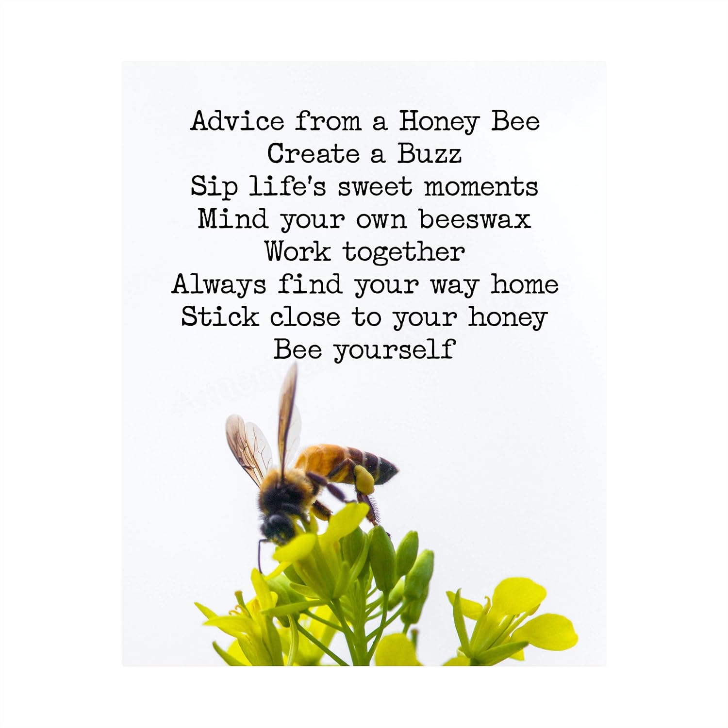 Amazon Com Advice From A Honey Bee Inspirational Quotes Wall Art 8 X 10 Typographic Floral Photo Print W Honey Bee Image Ready To Frame Motivational Home Office School Decor Great Reminders For All Handmade