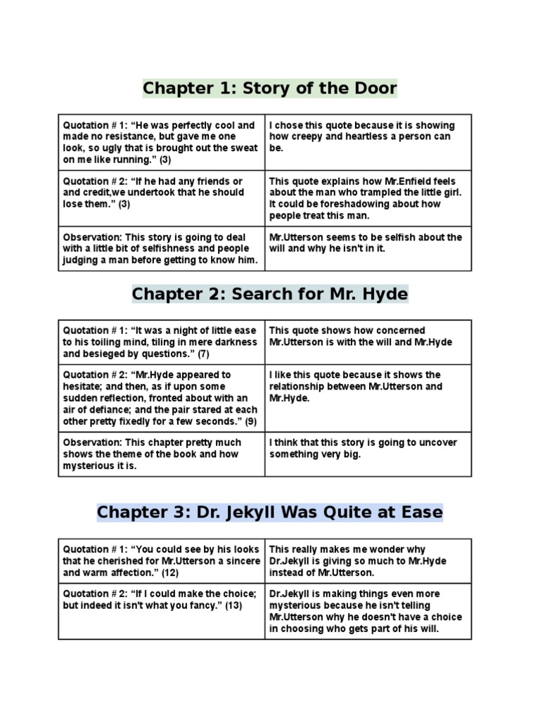 Jekyll and hyde quotes chapter 2. Strange Case of Dr Jekyll and Mr Hyde. Jekyll has a â sincere and warm affectionâ 65 for Utterson. Henry Jekyll but he is also the executor of Jekylls will.