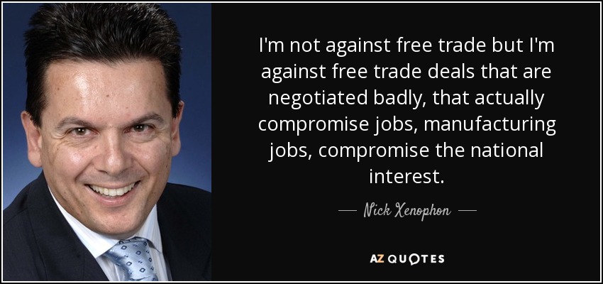 Nick Xenophon Quote I M Not Against Free Trade But I M Against Free Trade