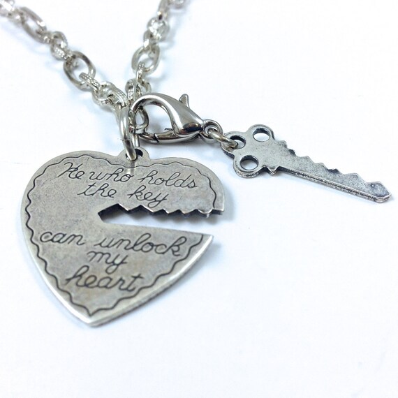 2 piece Heart Key necklace He who holds the key can open my heart. The heart quotes He who holds the key can unlock my heart. Bring my heart with you wherever you go and know that I am with you as well love of my life.