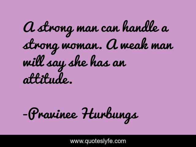 A weak man will say she has attitude 4. 3A strong man can handle a strong woman. Sometimes in life we need quotes about strength to remind us to remain steadfast because we all go through hard times times where our strength and fortitude are tried and tested.